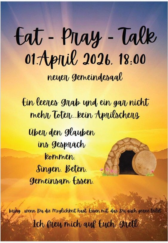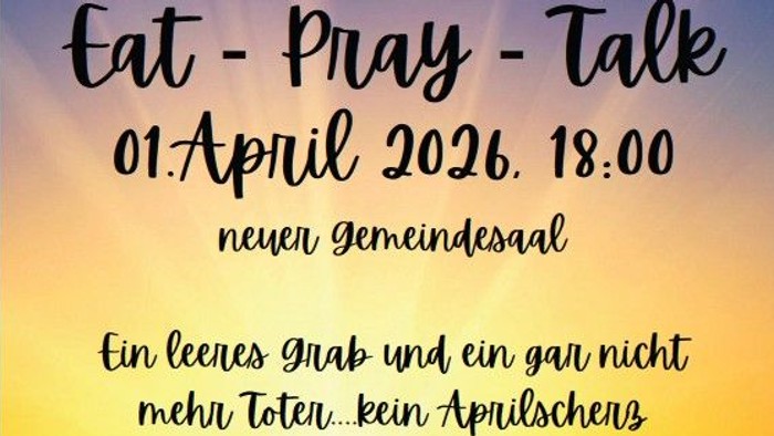 Herzliche Einladung zu Eat - Pray - Talk am 1. April 2026 um 18:00 Uhr.