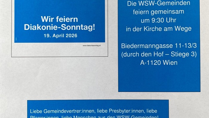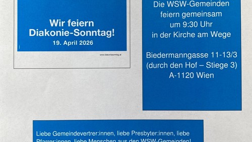 Wir feiern WSW-Diakoniesonntag am 19. April in der Kirche am Wege um 9.30.